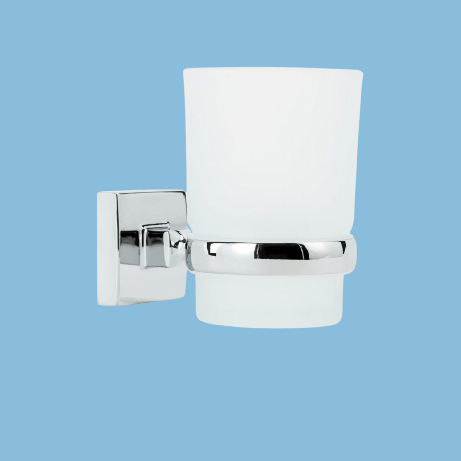 - The tumbler holder and soap holder have a rust-free substrate and come with a removable frosted glass tumbler and a removable frosted glass soap tray, respectively.