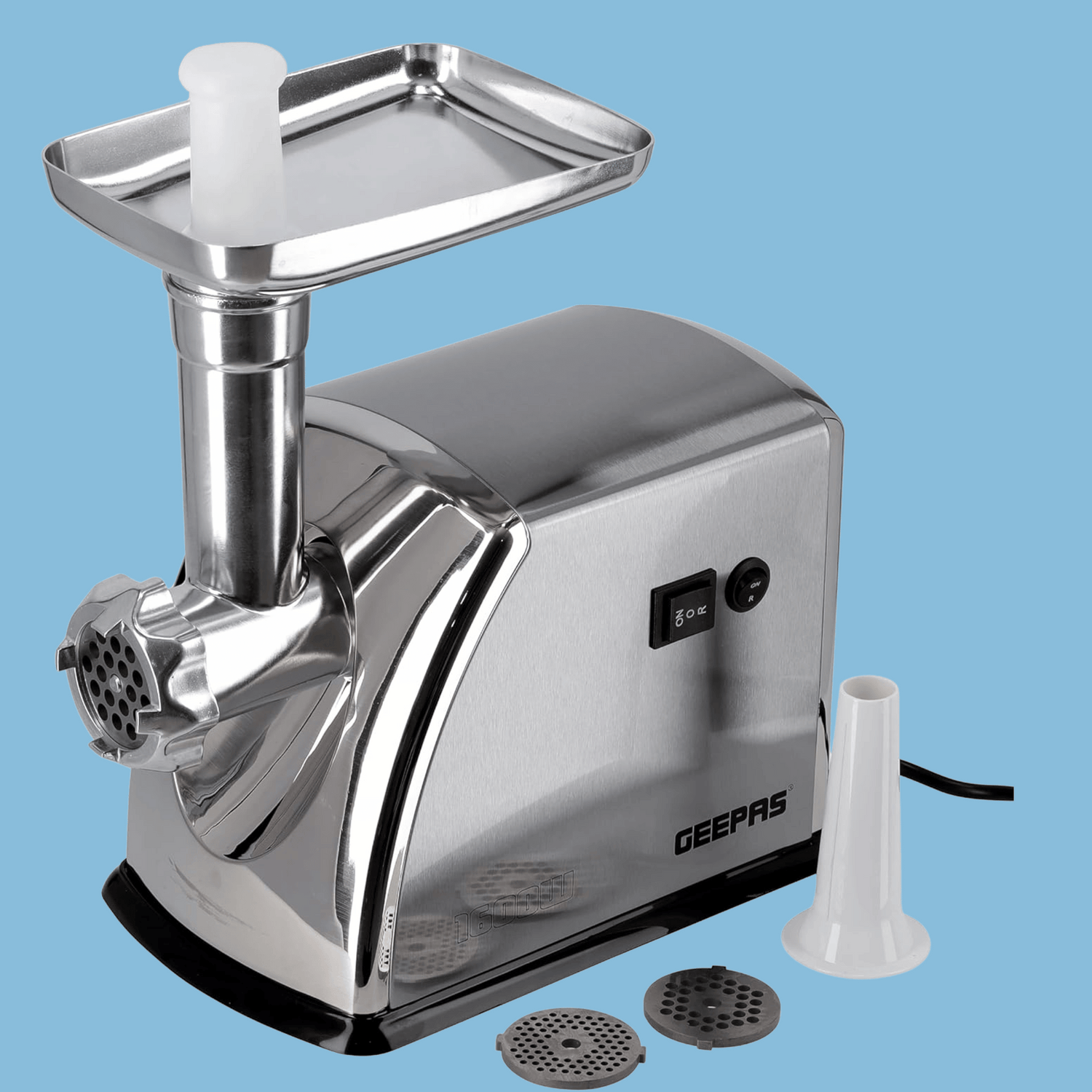 - No family feast can pass without meat dishes. It can be baked chicken, various meat pies or meatballs. For the preparation of such wonderful dishes, it requires mince. Making stuffing on your own for a long time and energy-consuming, and buying ready-made is sometimes more expensive than doing. Also, the ingredients of purchased lamb mince or any other are not always known and may be harmful to health. Geepas electric mincer can help with the preparation of nutritious meat dishes. This amazing helper will simplify the process of grinding lamb, veal or beef meat or other similar products. With this, you can chop peppers or mushrooms and use them to make sausages. This food mincer can translate into life any of your culinary ideas, which will not waste your efforts and time. 1. SAUSAGE MAKER - The special nozzle of the mincer machine for sausage is also included in the kit. You can diversify your diet with delicious homemade sausage, which will accommodate the ingredients you want for you. It will take little time and will be much cheaper than buying sausage every time in the store. Now your every day can begin with a piece of delicious meat dish. 2. 3 METAL CUTTING PLATES - Cooking minced meat is even easier and cheaper now. You do not have to buy additional accessories or blades for this food maker. The set includes 3 cutting blades in different sizes, namely 3 mm, 5 mm and 7 mm. This will allow you to choose between coarse, medium and fine grinding of mince beef or veal. 3. PROPER NUTRITION - Your homemade sausage can be tasty and healthy with the meat grinder. When cooking, you can add your own ingredients and control the level of fat in the dish. This will allow you to prepare healthy and nutritious sandwiches and burgers. Thanks to this food mill, you can cook dishes according to your family recipes and please your whole family. 4. PACKAGE INCLUDES - Sausage Accessory, Kubbe Accessory, and Food Pusher.