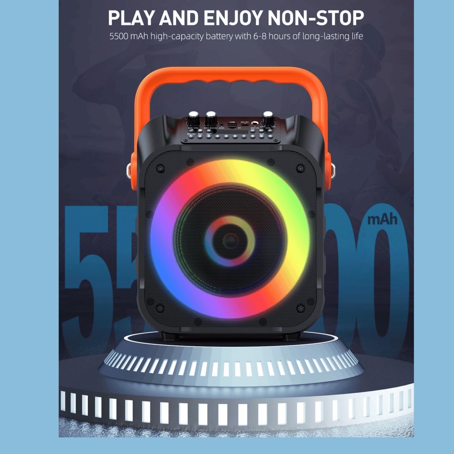 • 【Portable Outdoor Speaker】The bluetooth speaker with microphone is small in size and lightweight,suitable for gifting.The portable design is convenient for carrying and going out,and you can easily carry it to places such as beaches and outdoors.It is equipped with a 5500mAh high capacity battery, allowing for 6-8 hours of continuous music playtime on a full charge,allowing you to enjoy the joy of singing anytime,anywhere