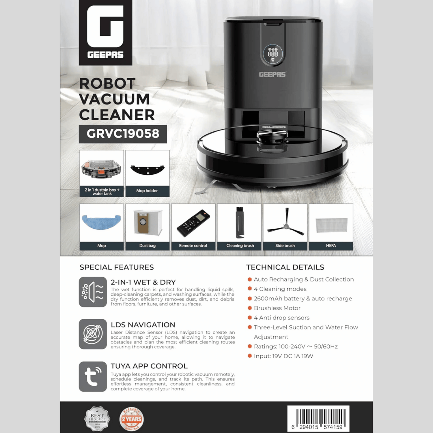 Upgrade your home cleaning experience with the GEEPAS 2-in-1 Wet & Dry Robot Vacuum Cleaner, a smart, efficient, and hands-free solution designed to keep your floors spotless. Combining powerful suction, intelligent navigation, and both vacuuming and mopping functions, this all-in-one robotic assistant takes care of everyday messes so you don’t have to.